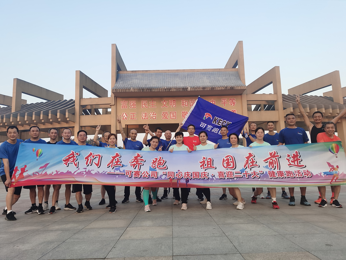 為慶祝中華人民共和國(guó)成立73周年,豐富可賽公司廣大員工的精神文化生活,展現(xiàn)員工積極向上的精神風(fēng)貌,增強(qiáng)可賽公司的凝聚力和向心力,9月30日清晨,可賽公司舉辦了2022年“同心慶國(guó)慶,喜迎二十大”健康跑活動(dòng)。