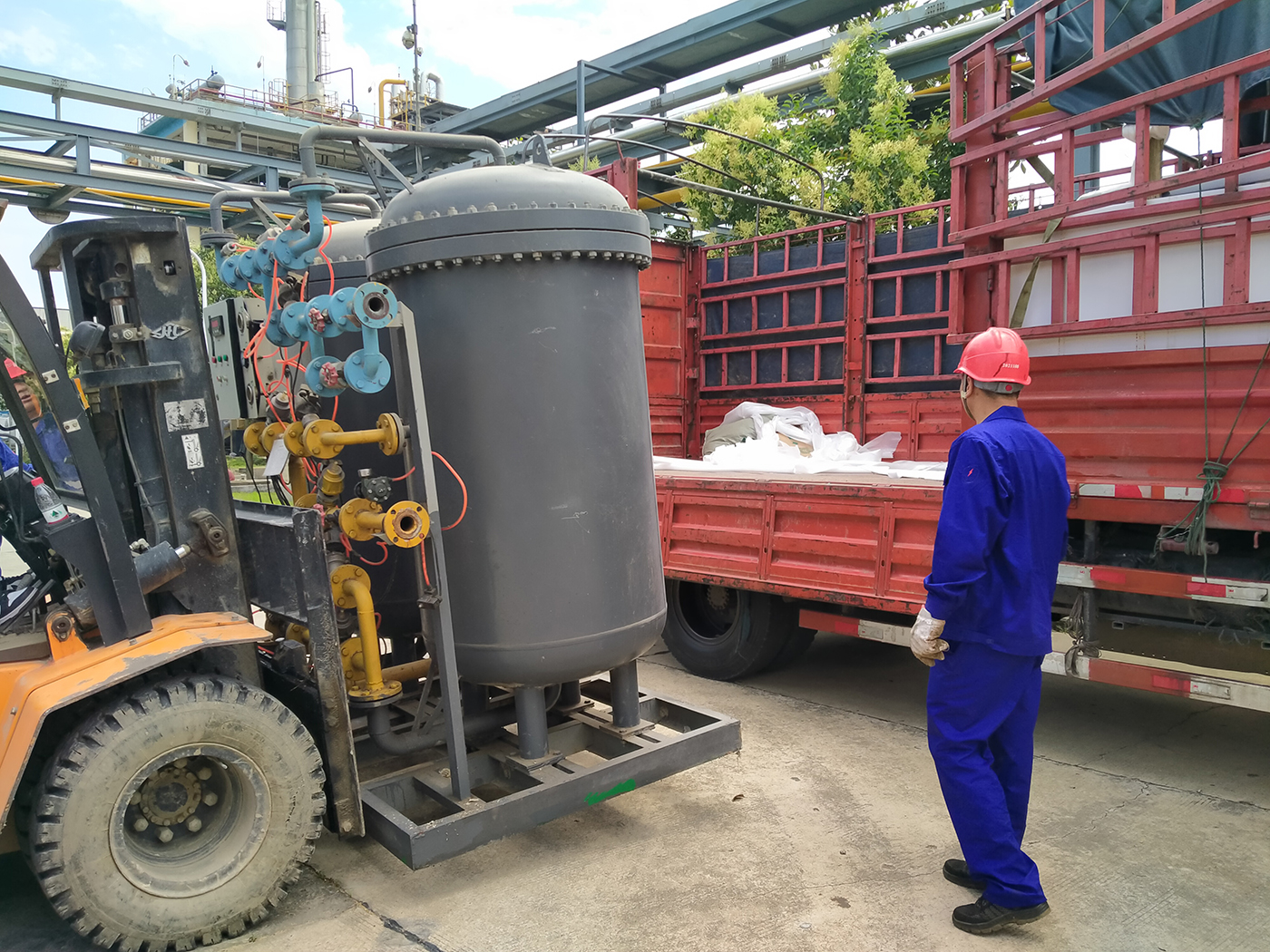 動(dòng)力車間照生產(chǎn)部的安排,已做好將舊制氮機(jī)發(fā)貨到指定維修廠家的準(zhǔn)備工作。6月7日14:00,維修班向斌、毛顯群等人在現(xiàn)場(chǎng)將舊制氮機(jī)從原設(shè)備基礎(chǔ)上拆卸下來。由于制氮間空間較小,叉車在屋內(nèi)作業(yè)受到局限,向斌等人反復(fù)想辦法,最終多人合力用撬桿數(shù)次移動(dòng)設(shè)備位置,才保證叉車將設(shè)備移出屋外。15:30,在向斌等人的不懈努力下,設(shè)備終于安全地裝車,圓滿完成當(dāng)天的任務(wù)。