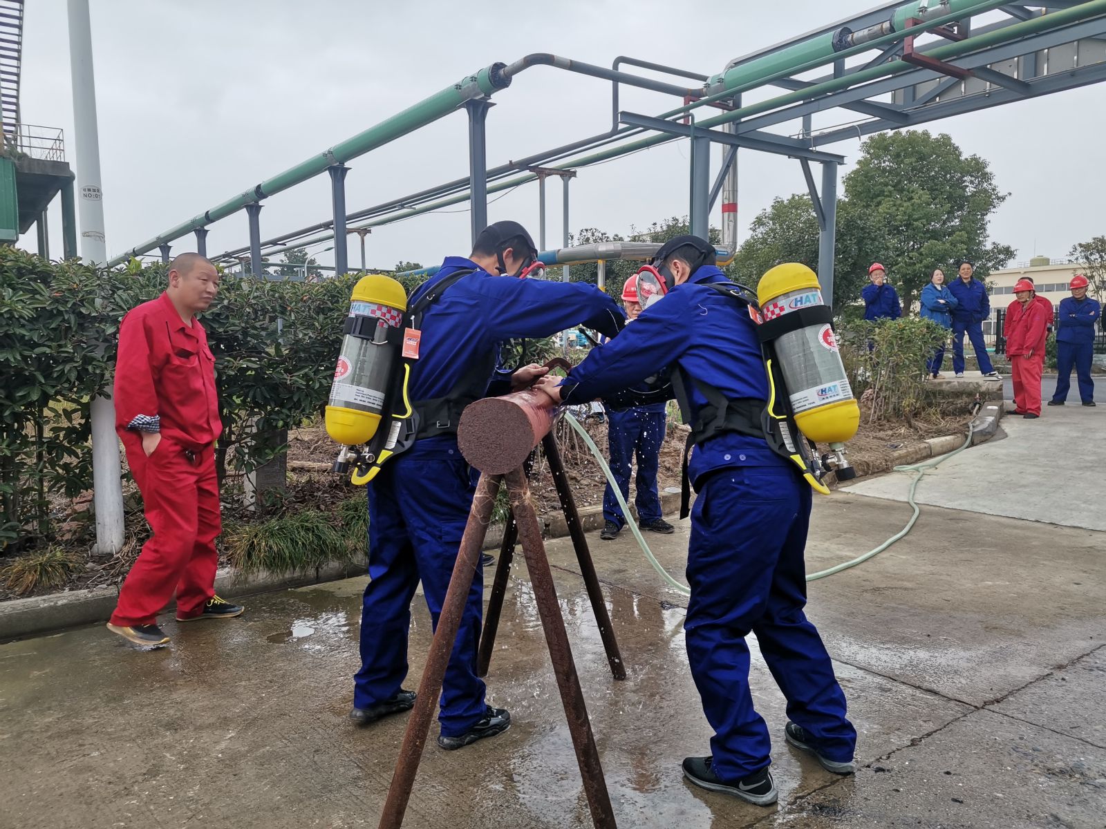 在參賽人員上報(bào)后,各參賽人員為了不影響工作,在工作之余利用休息時(shí)間加緊練習(xí),甚至利用周末聚在一起刻苦練習(xí),因?yàn)樗麄冎肋@并不僅僅是一次比賽,也是一次學(xué)習(xí)鍛煉的機(jī)會(huì),更是在發(fā)生這些事故時(shí)保證人身及財(cái)產(chǎn)安全的必不可少的生存技能,因此在訓(xùn)練時(shí)他們顯得異??炭?。